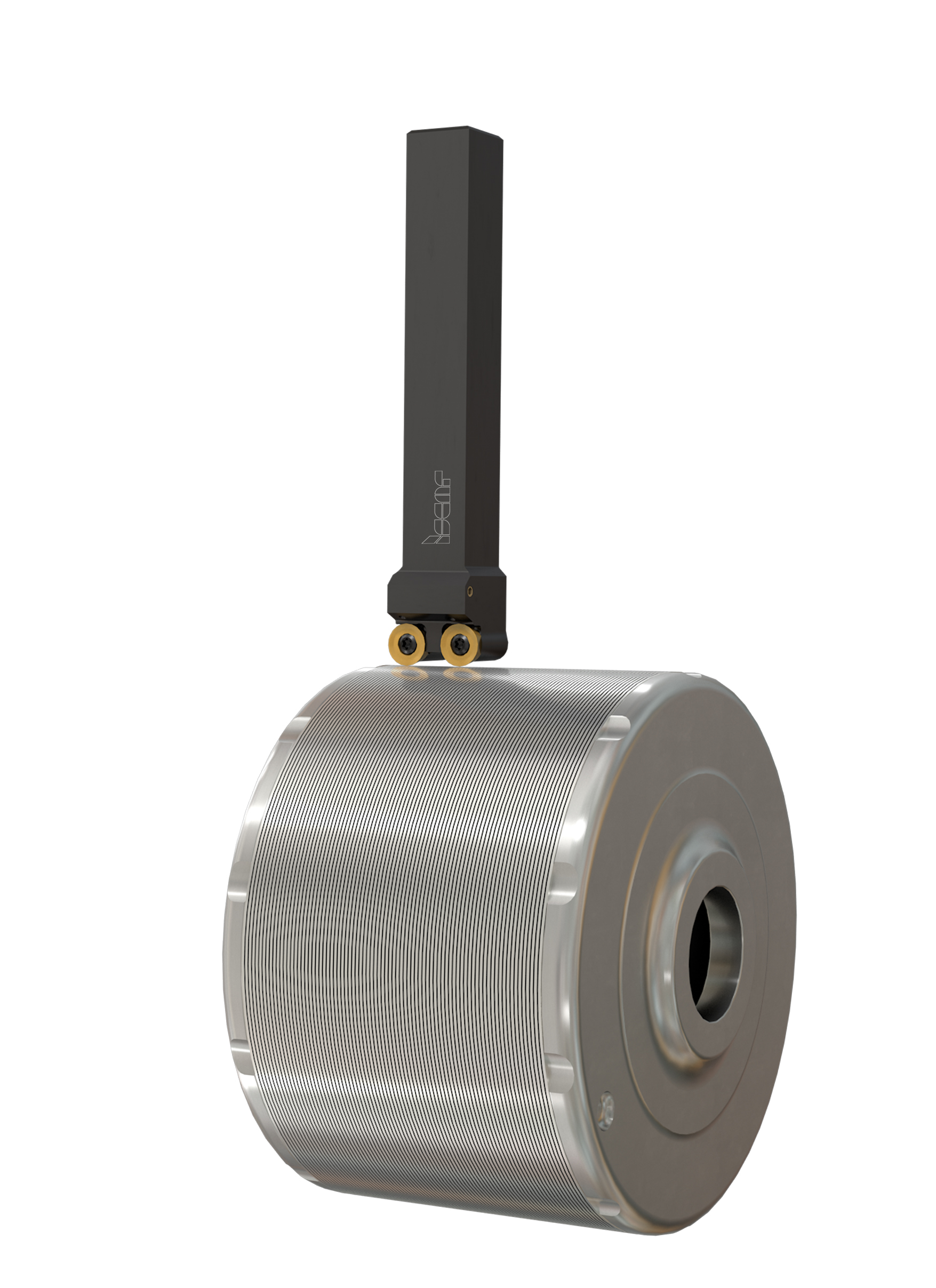 ISCAR's Turning Tools with Indexable ISO-Type Inserts: Featuring a wide range of inserts and toolholders, this line ensures optimal performance in turning operations, crucial for producing high-precision electric motor components and other cylindrical parts. The rotor consists of many stacked plates of electric steel. Lamination sheets are used instead of a solid body to reduce current loss. The surface must be completely clean of chips, oil, water, dust or dirt, and coolant fluid cannot be used, only air. This is a challenge as a lot of heat is generated on the cutting area and the fragmented chips stick to the surface. Surface finish requirements for this interrupted turning operation remain strict. ISCAR has overcome these challenges by developing a combined tool with coolant holes both on top and bottom of the cutting edge to cool and blow away the chips. The two round inserts are positioned for semi-finish and finish operations, generating an Ra1.9 surface roughness (Fig. 2).