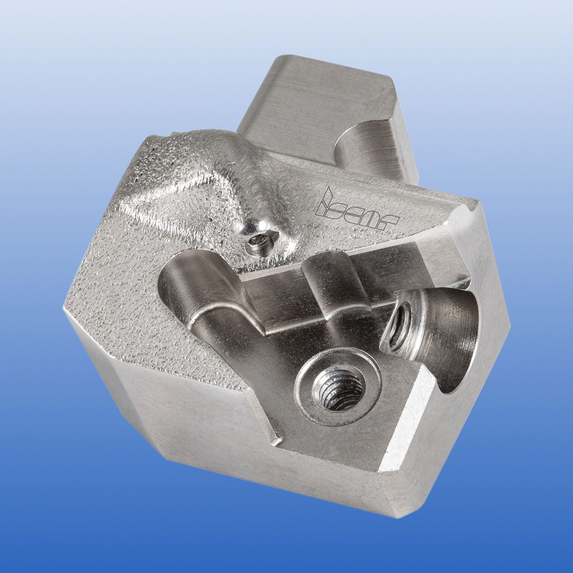 The complex-shaped head of NEOSWISS for Swiss-type machines is a modular quick-change head system created by 3D printed technology.