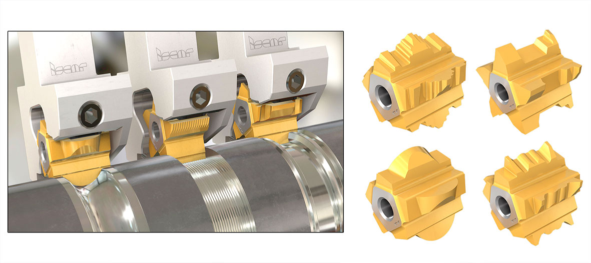 ISCAR has also added a group of unique PENTACUT-27 blank inserts with five edges for tailor-made profiles to their product portfolio (Fig. 4). These starlike carbide blanks can be ground by the end-user to form different shapes for shallow profiling and grooving depths when machining pulleys, bearings, and fittings. Customers who produce special tools from blanks are limited compared to ordering specially tailored tools from cutting tool manufacturers. However, when time is of the essence, customers can find the most appropriate solution within given constraints by creating their own specially tailored tools. By providing customers with the ability to create their own tools, new horizons are created to overcome the everyday obstacles of manufacturing.